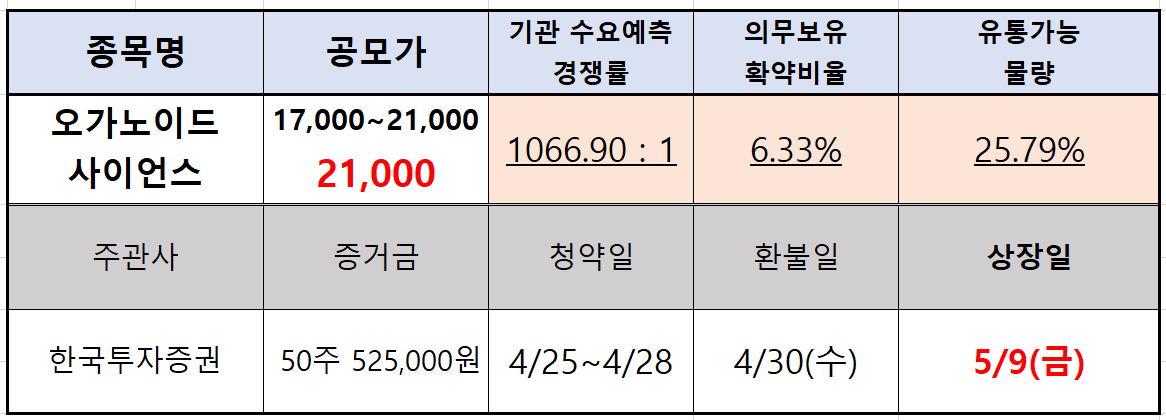 공모가 밴드( 17,000 ~ 21,000) 공모가 상단 확정→ 21,000원