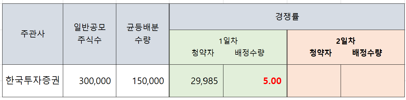 1일차 기준 청약자 3만명, 균등 예상 5주