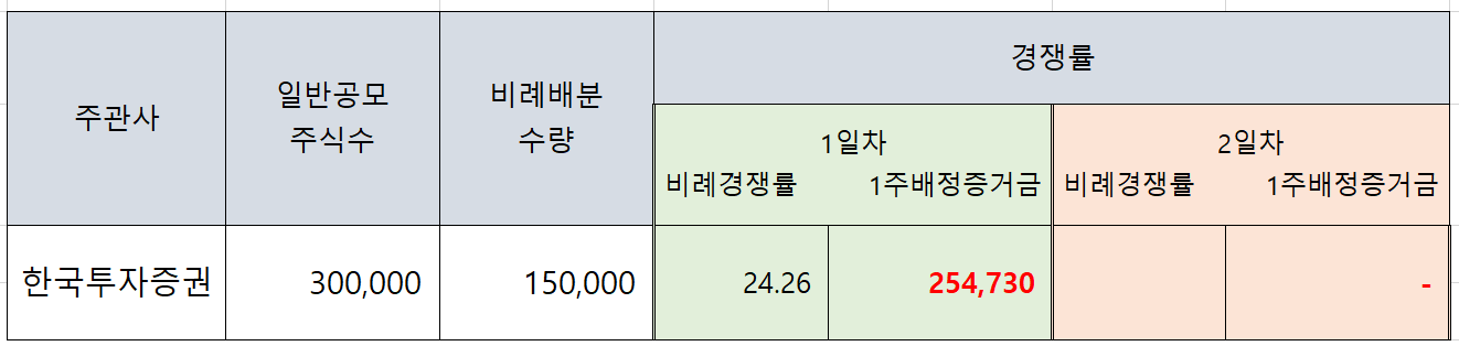 1일차 기준 비례배분 1주 배정 증거금은 255,000원