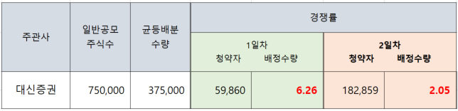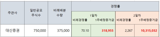 기관수요예측 높고, 상장일 유통물량 많지 않아 균등 청약 진행 합니다.