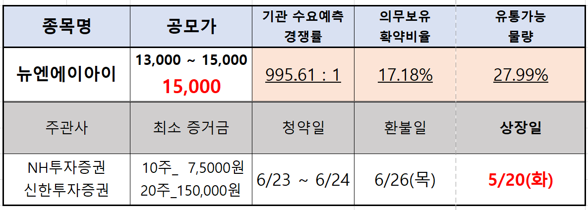 일반청약 진행하는 뉴엔에이아이 공모주입니다.