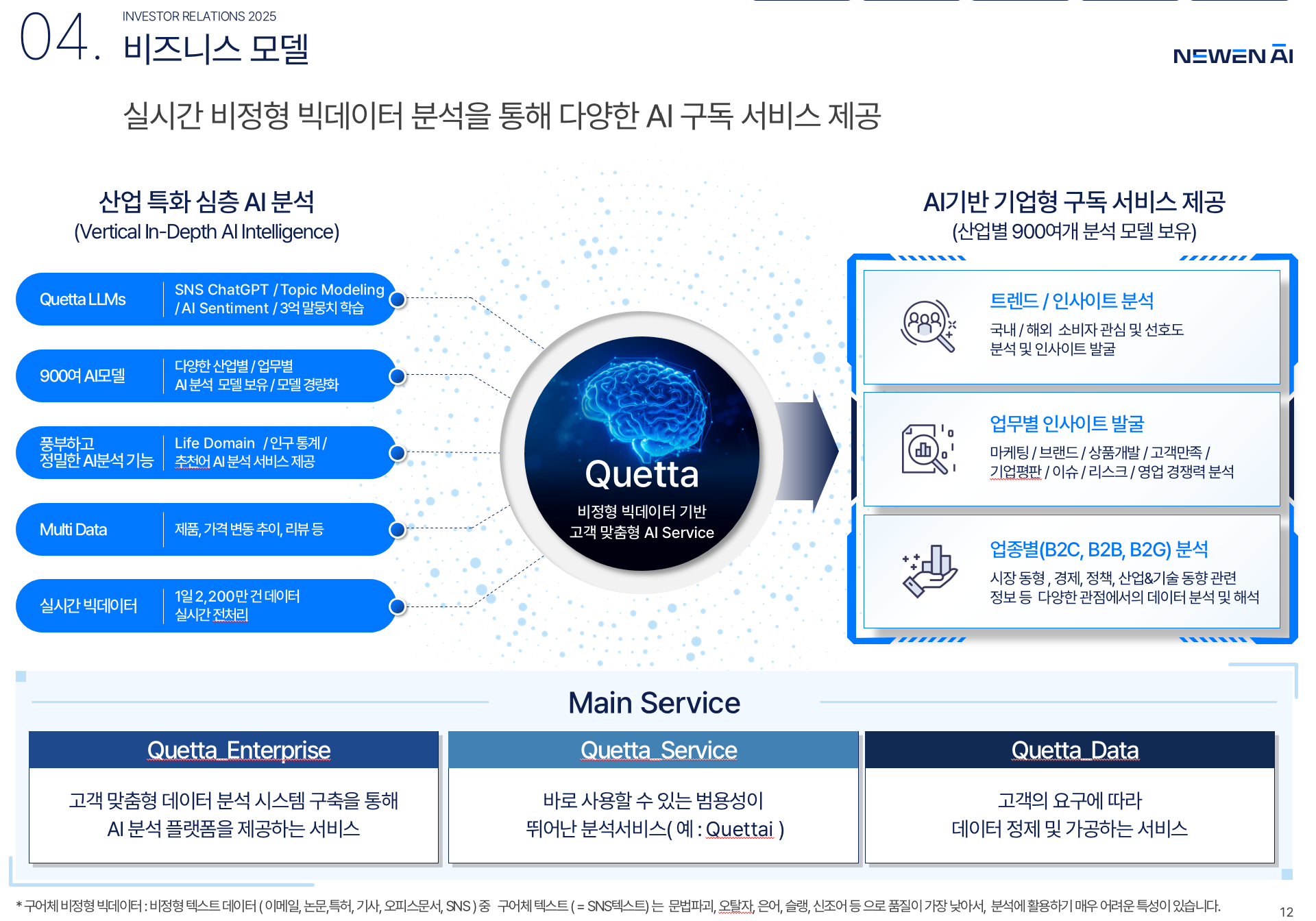 Quetta_Enterprise : 고객사별 Needs에 맞춤형 AI기반의 빅데이터 분석서비스 제공