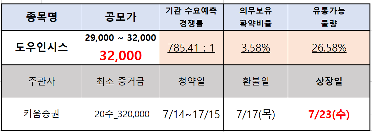 공모가 밴드( 29,000~32,000) 공모가 상단 확정→ 32,000원