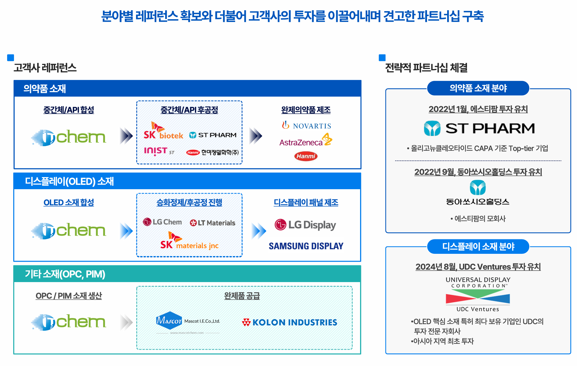 합성기술을 기반으로 의약품(API 및 중간체) 및 디스플레이(OLED) 등