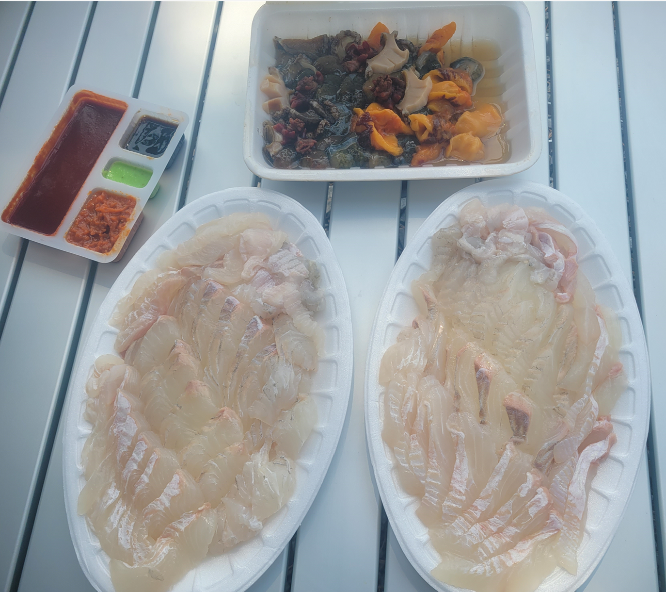 지인들과 안면도 캠핑 전 순환수산에서 자연산 광어회를 포장 했습니다.