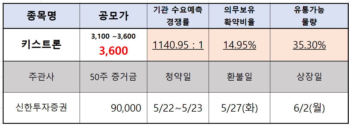 공모가 밴드( 3,100~ 3,600원) 공모가 상단 확정→ 3,600원
